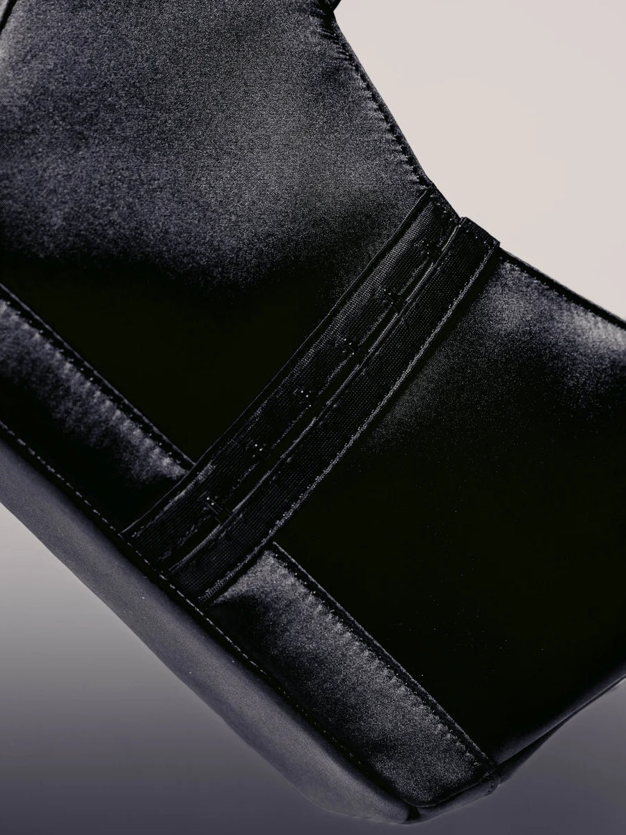 Expertly crafted with luxurious Italian satin and delicate French Chantilly lace, The Bra Bag exudes sophistication. Its sleek black color adds a touch of elegance. With two straps for versatile carrying options and functional pockets for organization, this bag is both stylish and practical.