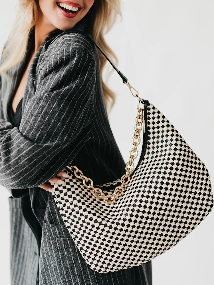 Available in 3 colors, this woven bag features a slouchy look, a metal chain detailing, and both a short and a long shoulder strap. Elevate all your looks with this beautiful trendy bag!